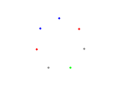 Rysunek powyżej jest przykładem takiego wyboru punktów (podzbiorów), w których dowolne trzy wierzchołki tego samego koloru nie utworzą trójkąta równoramiennego.