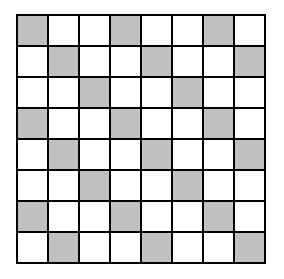 Jeśli pomalujemy co trzecie pole szachownicy, to otrzymamy 22 pola zacieniowane. Możemy to zrobić na dwa sposoby (rysunki powyżej). Do pokrycia kamieniami 3×1 szachownicy z wyciętym polem potrzeba 21 kamieni, przykryją więc one 21 pól zacieniowanych. Jeśli usuniemy pole białe, szachownicy bez tego pola nie da się pokryć.