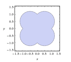 Oblicz powierzchnię obszaru zdefiniowanego przez $x^2 + y^2 \le |x| + |y|$ w $R^2$.