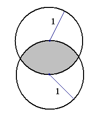 Zadanie 200 Rozwiązanie Dwa jednakowe okręgi, każdy o promieniu długości 1, przecinają się tak, że odległość ich środków jest równa długości promienia. Oblicz pole zacieniowanej figury.